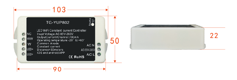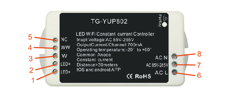 4.WW:输出端口,灯具上LED暖色负极。