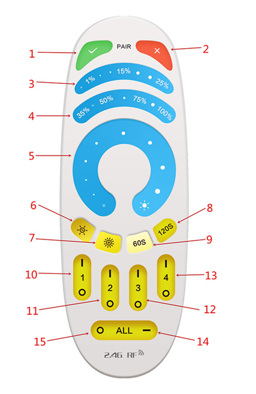 13.第4组配对,打开灯具20秒内,连续按4次,灯具配入遥控器